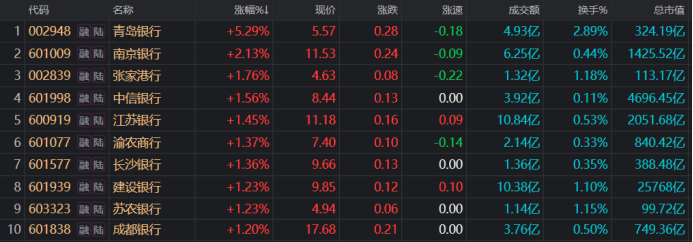 今日(4月21日),银行板块表现活跃,截至收盘,其板块指数全天收涨近0.37%,在31个申万一级板块中位列第7位。个股方面,青岛银行、南京银行、张家港行等股涨幅居前,其中,建设银行、杭州银行2股盘中股价创历史新高。