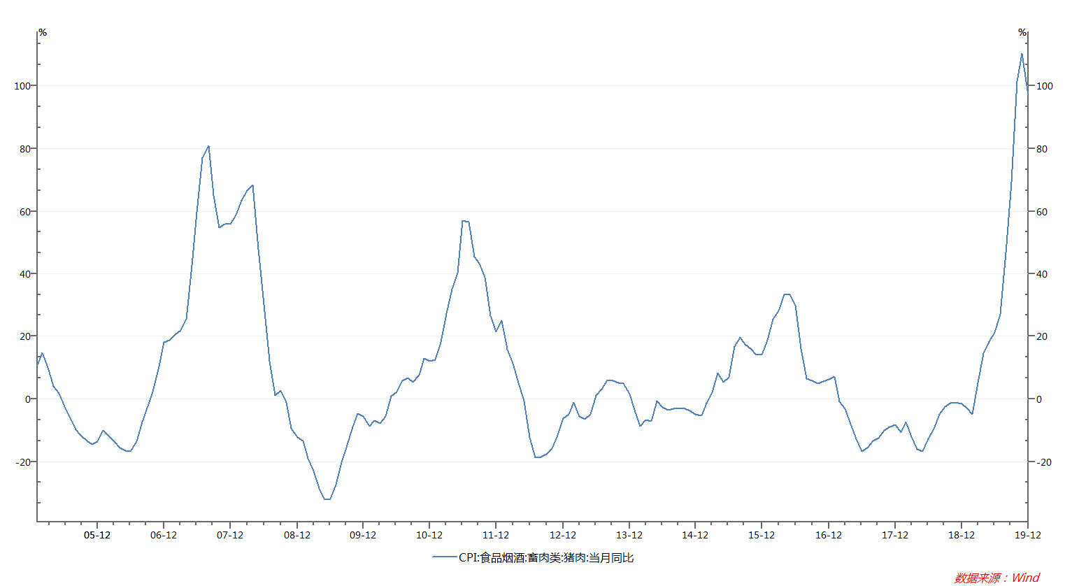 国家统计局最新发布数据显示,2019年12月份,全国居民消费价格同比上涨4.5%(预期4.7%,前值4.5%)。