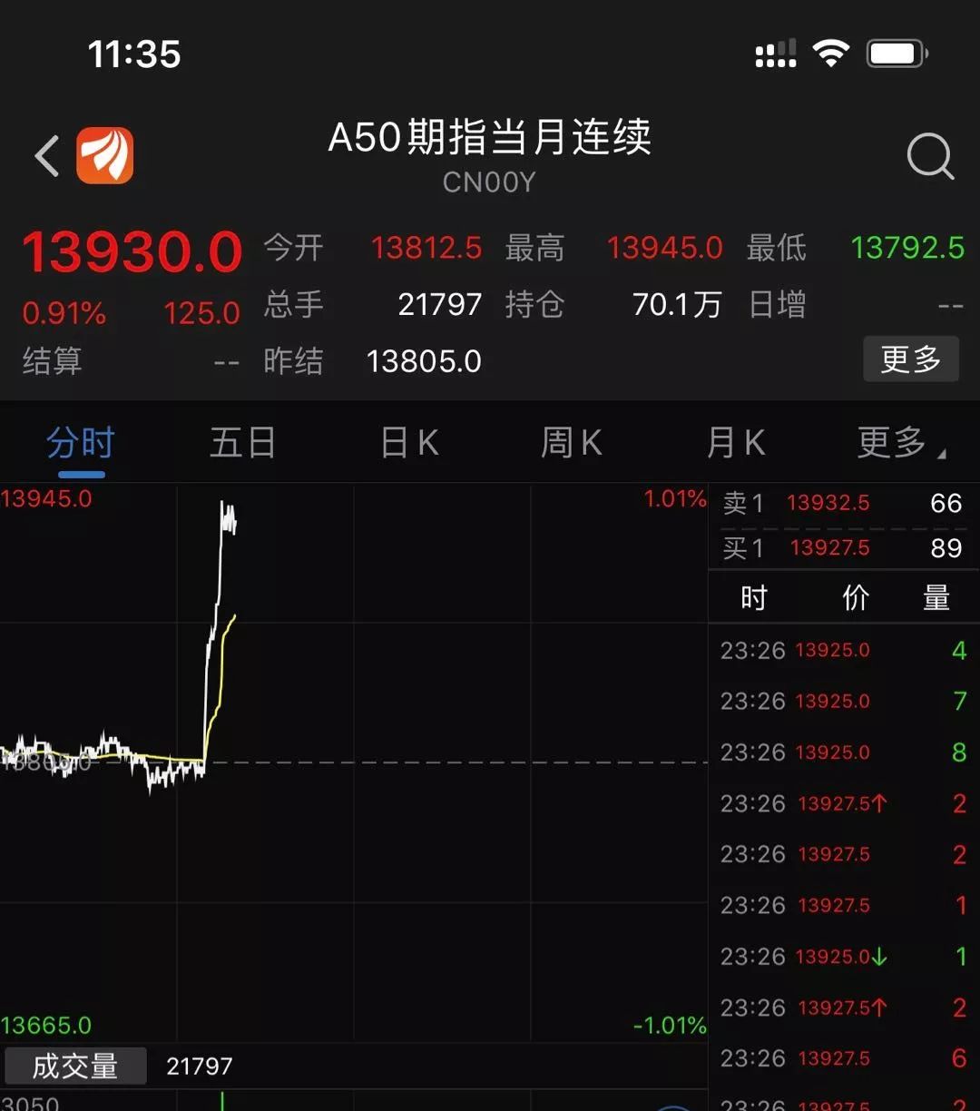 与此同时,A50期指的反应相当剧烈,直接涨了1%。