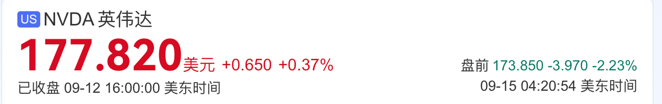英伟达美股盘前直线下挫,跌幅超过2%。