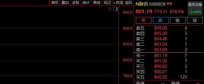 联讯仪器(688808)今日正式在上交所科创板上市交易,开盘即大涨800%,随后继续上攻,最高一度涨逾950%,截至午间收盘,涨幅略微回落至878%,换手率70%。