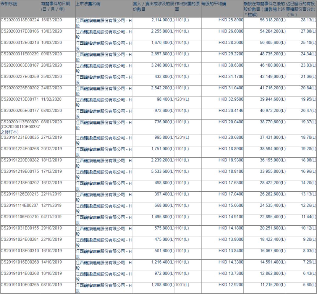 2010年8月,赣锋锂业在A股深交所上市,2018年10月,赣锋锂业在港交所挂牌交易。