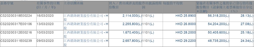 这已经是朱雀基金在3月份第四次出手增持赣锋锂业了。就在3月13日,朱雀基金刚刚买入了225.58万股,每股均价为26.8港元,约耗资6045.54万港元。