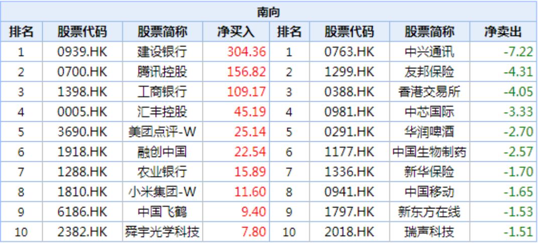 南下资金买入较多的也都是知名公司,例如腾讯、美团点评、融创中国、小米等。