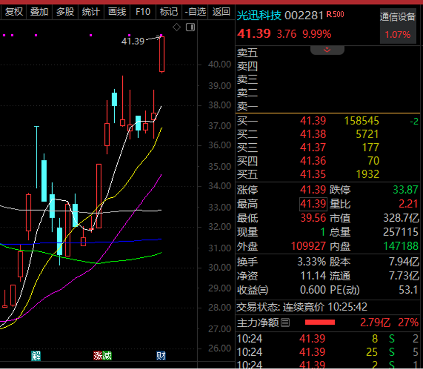 光迅科技直线涨停。