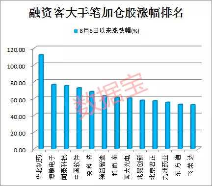 在融资客超亿元加仓的216股中,近一个月股价表现整体强势。数据显示,截至昨日收盘,这216股8月6日以来平均涨幅为17.76%,是同期沪指涨幅的3倍以上。13股在此期间累计涨幅超过50%,表现最佳的是华北制药,累计涨幅111.57%。在维生素涨价的预期催化下,华北制药8月下旬以来股价接连涨停。消息面上,6月中旬BASF因德国工厂A1000及AD3设备出现故障,VA停报停签预计持续至10月,供应收缩将对行业价格形成较强支撑,国内行业价格有望跟涨。