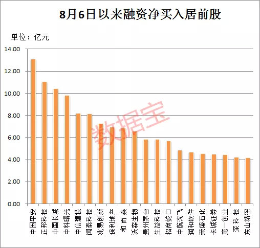 与此同时,杠杆资金近期也在持续加码。证券时报·数据宝统计显示,两市融资余额昨日9308.88亿元,创三个月来新高。融资客短短四个交易日内,累计净买入金额174.09亿元。而自8月6日沪指阶段低点2733.92点以来,融资客净买入金额已达到358.63亿元。在这近一个月时间里,有超800股获融资客加仓,其中216股获融资客净买入金额超亿元。
