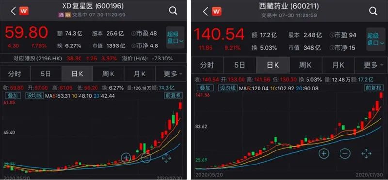 不过,生物医药板块又大幅领涨,多只个股在盘中刷新历史新高。近期生物医药板块一路高歌猛进,随便打开一只股票的K线来看,几乎都是45度朝上的走势。