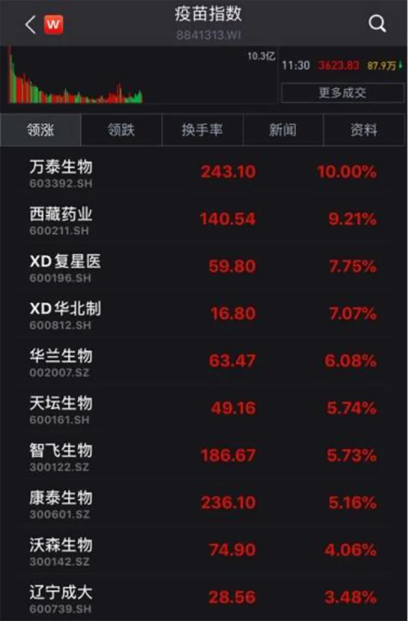 生物疫苗板块持续升温