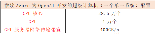 据微软官网,微软Azure为OpenAI开发的超级计算机是一个单一系统,具有超过28.5万个CPU核心、1万个GPU和400GB/s的GPU服务器网络传输带宽。据英伟达,使用单个Tesla架构的V100GPU对1746亿参数的GPT-3模型进行一次训练,需要用288年时间。此外,算力资源的大量消耗,必然伴随着算力成本的上升,据Lambda,使用训练一次1746亿参数的GPT-3模型所需花费的算力成本超过460万美元。