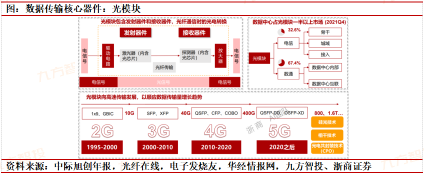数据传输速率:容易被忽略的算力瓶颈。作为云厂商IT基础设施的必要通信设备,光模块、光芯片、光器件长期有望显著受益。目前ChatGPT的成本高企,算力成本与功耗过高是AI产业化落地的主要阻碍之一,所以低功耗低成本的算力解决方案是未来数据中心硬件设备的重要发展方向。