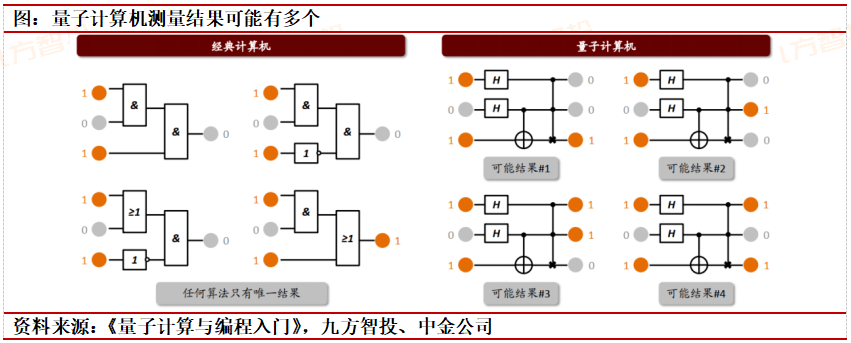 同样,量子计算机在经过量子算法运算后每一次测量都会得到唯一确定的结果,且每一次结果都有可能不相同。根据基础的量子门,科学家可以开发出相应的量子算法。