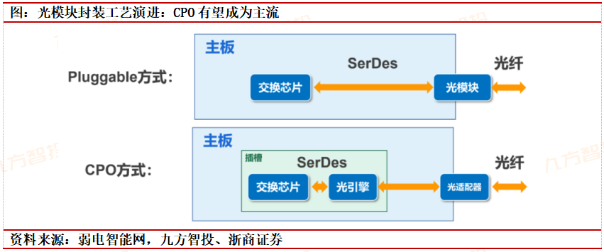 CPO的低功耗或成为AI高算力下高能效比方案。