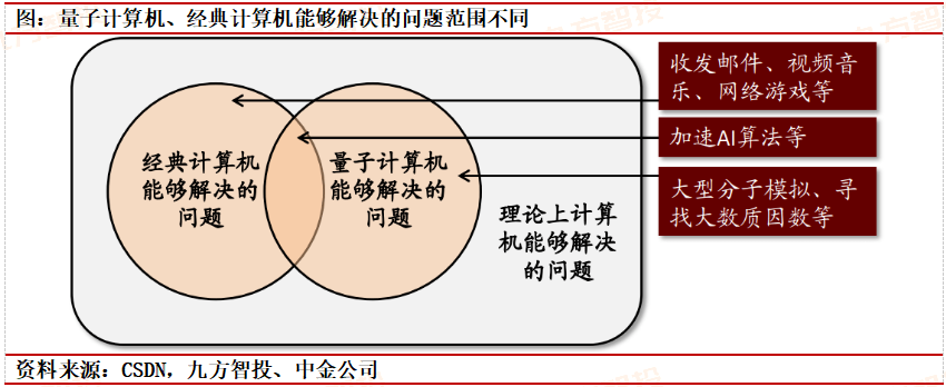 优势:具有经典计算无法比拟的巨大信息携带和超强并行处理能力,能够在特定计算困难问题上提供指数级加速,有望成为未来几乎所有科技领域加速发展的“新引擎”