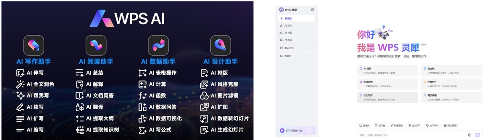 图:WPS AI 2.0-四大AI助手 图:AI政务办公解决方案 |