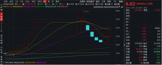 10月9日,豫金刚石盘中放量涨停。截至当日收盘报6.02元每股,成交9.75亿元,封单超4万手。9月30日,该股已大涨17%,两个交易日内,豫金刚石已经大涨超过42%。
