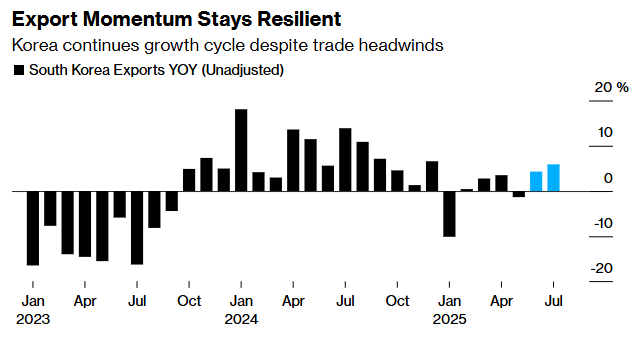 关税前抢跑效应显现!韩国贸易获短期提振:7月出口超预期增长5.9%