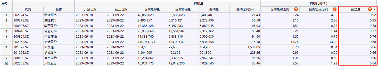在深股通大比例加仓个股榜单中,游族网络、鼎捷软件、华西股份上榜,位列前三。