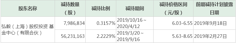 2019年2月26日晚,上海环境发布关于弘毅投资的首份减持计划公告,于2019年9月16日晚披露减持结果,减持期内合计减持约2.65亿元。第二天,2019年9月17日晚,上海环境随即发布弘毅投资新的减持计划。此后,公司于2019年10月16日至2020年4月12日,合计减持约1.44亿元公司股份,并于2020年4月13日晚披露了此次减持结果。4月14日,清仓减持计划随即出炉。
