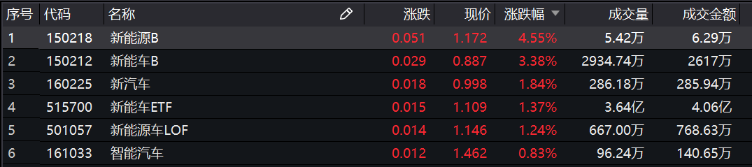 上述相关主题的场外基金有:嘉实智能汽车(002168.OF)、富国中证智能汽车(161033.OF)、国泰国证新能源汽车(160225.OF)、易方达黄金ETF联接A(000307.OF)、易方达黄金ETF联接C(002963.OF)、汇添富黄金及贵金属(164701.OF)。