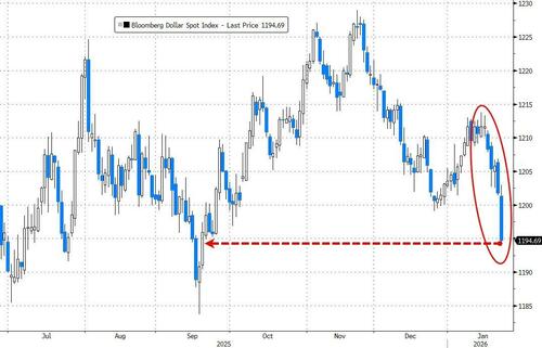 Spectra Markets总裁、前货币交易员Brent Donnelly在报告中写道:“此时此刻,美元在2026年的回报分布几乎肯定会严重偏向下行。世界正意识到,美国的政策噩梦尚未结束。”