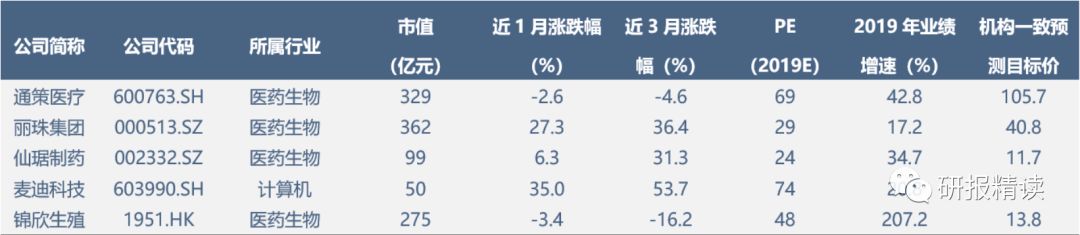 近一月,东兴证券、安信证券发布行业深度报告建议关注辅助生殖行业,并分别给予“看好”和“领先大市”评级。广发证券对通策医疗发布公司报告,并给予“买入”评级。华泰证券对丽珠集团发布公司报告,并给予“买入”评级。