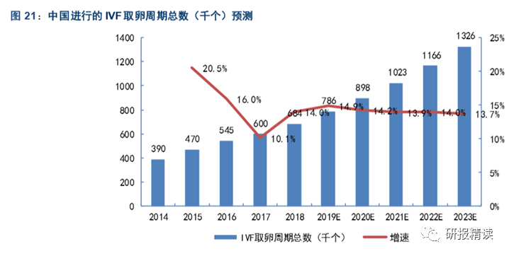 2、治疗人数稳步提升,IVF取卵周期数将超百万个,未来5年释放近40亿美元市场空间