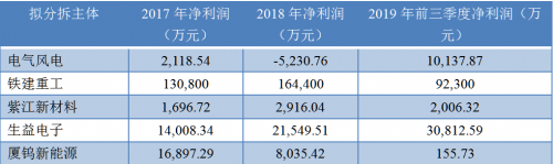 从分拆至科创板上市的主体来看,中国铁建的子公司铁建重工净利润较高(2018年净利润为16.44亿元),紫江企业子公司紫江新材料和厦门钨业子公司厦钨新能源的净利润则相对不高,2018年分别为2916.04万元、8035.42万元。而电气风电2018年的净利润甚至为负数,但其2019年前三季度扭亏为盈,净利润超过1.01亿元。