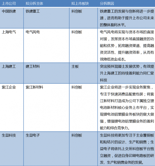 那么上市公司选择不同的板块分拆上市是出于什么考虑?