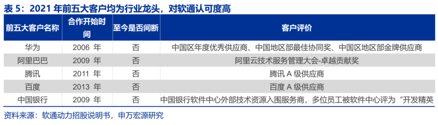 2021年前五大客户分别是华为、阿里巴巴、腾讯、百度和中国银行,均为各行业的头部企业。软通已成为百度文心一言生态合作伙伴,探索更多可能性。
