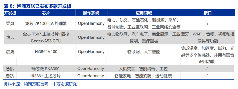 开发板:扬帆、启航、启鸿等系列,助力鸿蒙在交通、商显、智能家居、教育、运动、工业物联网等领域落地。