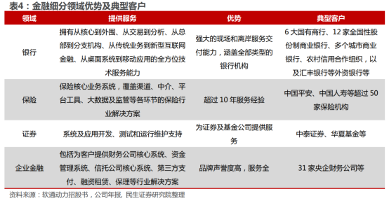 在证券领域,软通动力为证券公司、基金公司等各类型机构提供连续的系统及应用开发、测试和运行维护支持,服务了包括中泰证券、西南证券、华夏基金等多家机构。