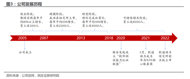 2005-2012:全球化融资助力海外业务扩张;2013-2017年是软通动力的关键转型阶段;2018年来,公司进入可持续发展阶段。
