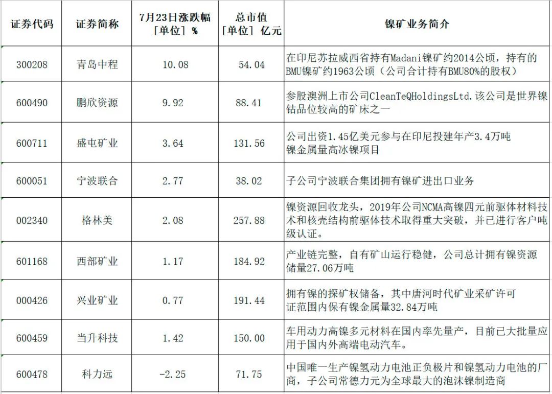剖析一家资源类企业质地与潜力,价格、产量、成本是关键,镍价未来走势、公司涉“镍”情况,无疑将牵动市场,记者对A股“镍”矿矿脉进行了一番梳理。