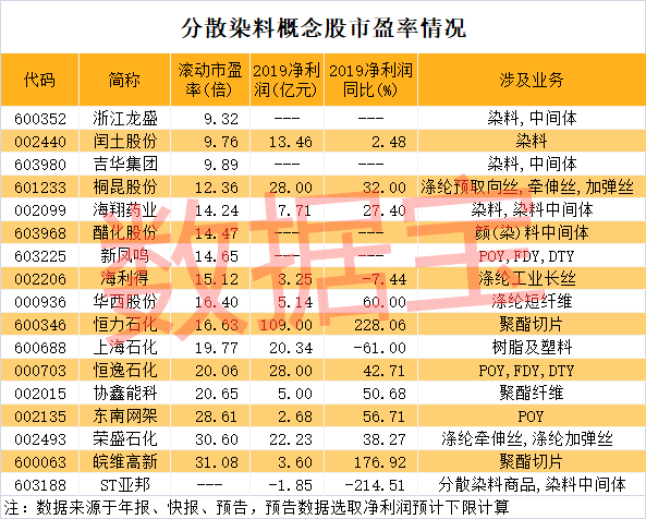 分散染料概念股市盈率普遍不足30倍