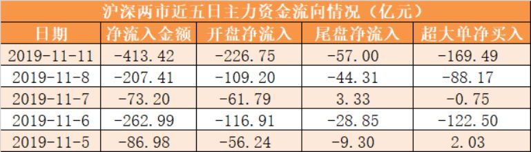 今日沪深两市主力资金开盘净流出226.75亿元,尾盘净流出57亿元,两市全天资金净流出413.42亿元。