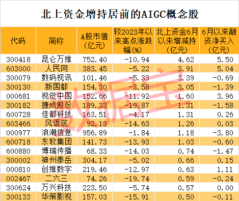 北上资金加码的AIGC概念股名单