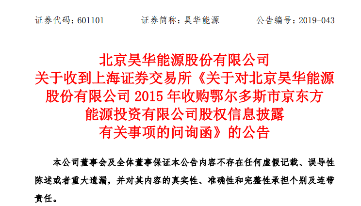昊华能源证券部回复媒体时则表示,京东方能源股权收购的错误主要影响还是在2015年,对于之后几年的财务有何影响,公司的审计、财务也在具体研究,目前还没有一个定论。董事长非常重视保护中小投资者权益,之后具体措施公司会相继公告。目前先回答好交易所问询,然后把这个事情自查清楚。