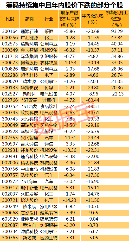 142股股东户数连续2月下降,其中39股被北上资金加仓。