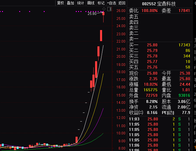 震荡行情下有只股票却在悄悄走牛。宝鼎科技延续近期强劲表现,今日早盘再封涨停,股价报25.80元,成交逾4亿元,换手率超8%。