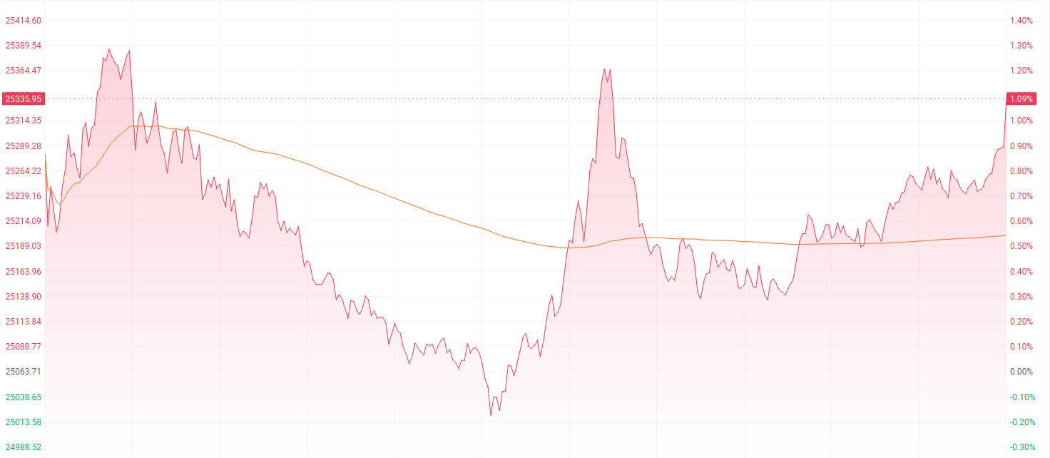 截至收盘,恒生指数涨1.09%,报25335.95点;科技指数涨1.91%,报4922.94点;国企指数涨0.98%,报8582.74点。