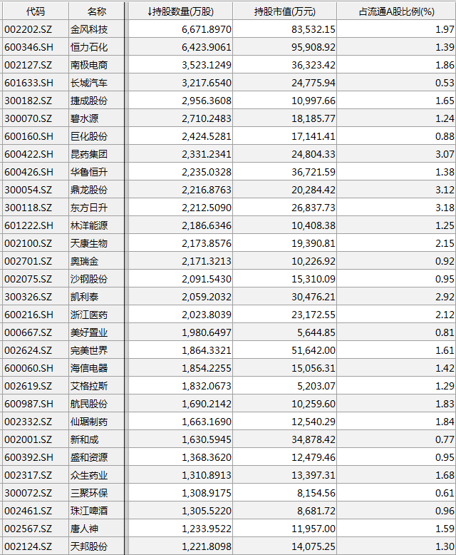 作为外资流入A股的主要渠道之一,陆股通三季度新增股数较多,一共达83股。按照新进持仓股数来看,金风科技、恒力石化、南极电商、长城汽车、捷成股份、碧水源等新进股数居前。
