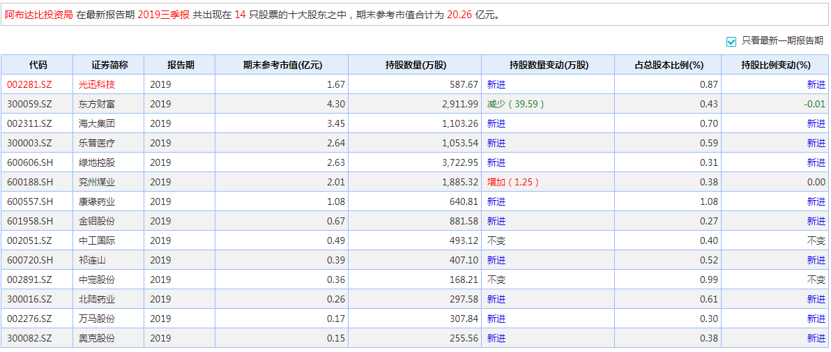 值得注意的是,从QFII新进的数据来看,阿布达比投资局三季度新进的股数最多,包括光迅科技、海大集团、乐普医疗等10股,增持兖州煤业1.25万股,减持东方财富39.59万股。