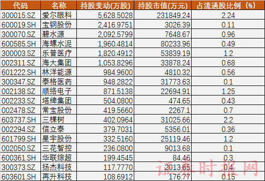 除了新进持仓外,QFII三季度也增持了不少个股。数据显示,QFII三季度增持了34股,其中,爱尔眼科、宝钢股份、碧水源、海螺水泥、乐普医疗、海大集团等增持数量均超1000万股。