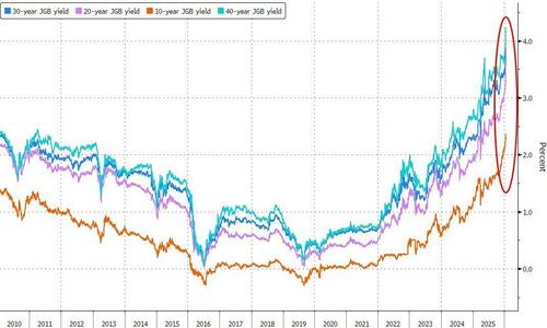 这一切最终也导致了周二惨烈市况的出现——日本政府当天疲软的20年期国债拍卖结果,加剧了市场对高市早苗拟推减税政策的担忧,导致情绪急剧恶化,抛售压力迅速形成恶性循环。日本30年期和40年期债券收益率周二双双飙升逾25个基点,创下自去年特朗普总统“解放日关税”引发全球市场动荡以来最大涨幅。