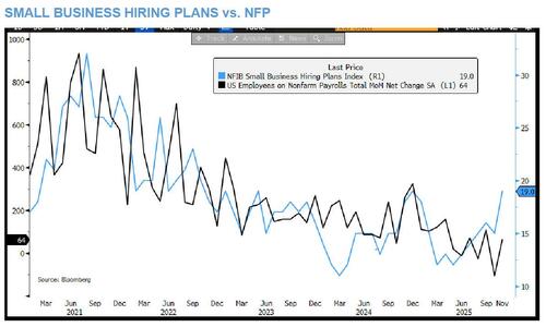 小摩还提到,通常领先非农就业数据一至两个月的NFIB小企业调查指数自夏季以来持续走高。尽管这一趋势可能尚未完全体现在12月数据中,但这或预示着未来数月招聘势头将加快。