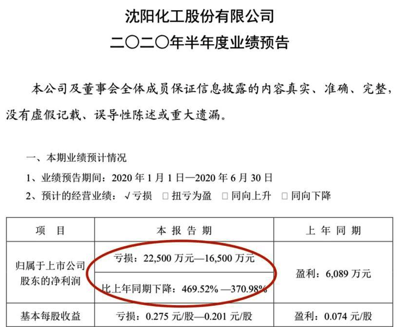 7月13日晚间,沈阳化工发布上半年业绩预告,受国际原油暴跌影响预计今年上半年净亏损1.65亿-2.25亿元,比上年同期下降469.52%-370.98%;去年同期其盈利6089万元。