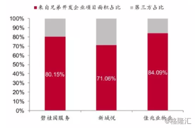 碧桂园服务中,有超过80%的物管面积源于兄弟开发企业,新城悦则是71%,佳兆业物业更是高达84%。