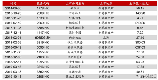 紧接着,中海物业、中奥到家、绿城服务均赴港上市。单2018年,主板上市的物业服务公司就新增6家,截止目前,联交所上市14家,A股上市1家(南都物业),新三板还挂牌了50家左右。