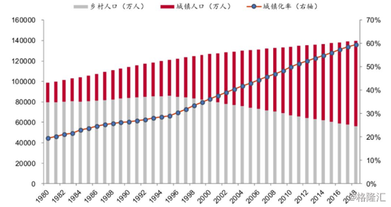 截止2018年末,中国的城镇化率为59.6%,相对美国的82.3%、日本的91.6%、韩国的81.5%、英国的83.4%,至少还有20%以上的提升。特别是今年以来,国家针对主要的二三四线城市的户籍政策改革,落户门槛降低,刺激着农业人口进城。